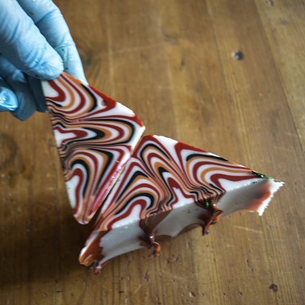 В технике Pattern bar можно отливать и запекать бруски любой формы, вот, например, срезы бруска треугольной формы.