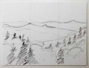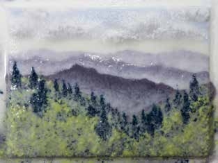 Потом, постепенно наполняем рисунок стеклянной крошкой и готовый пейзаж запекаем в печи.