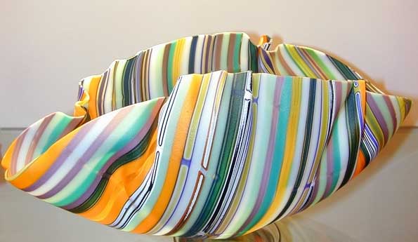 Технику наборного стекла использовал и Мел Мунсен – современный мастер, который объединил и довел до совершенства технику спекания стекла (фьюзинг), технику наборного стекла и технику мурини. Его работы отличает необыкновенная тонкость и изящество.