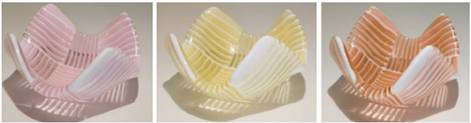 В этой технике самыми различными способами отливается довольно толстый брусок стекла, узор которого виден только на срезе.