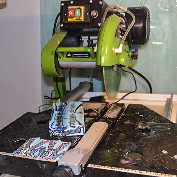 Для распила такого бруска необходима дичковая пила с постоянной подачей воды. Но не пугайтесь! В наших магазинах продаются плиткорезы на любой кошелек. Если в них заменить диск для керамической плитки на алмазный диск для стекла, получается прекрасная дисковая пила для стекла.