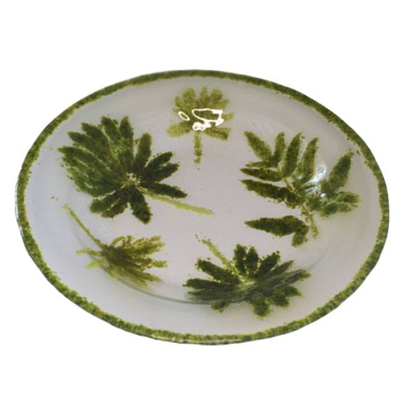 Техника Fossil Vitra представляет собой уникальный метод, в котором для создания отпечатков на стекле используются природные материалы, такие как листья, ветки, перья, а также стеклянная фритта, порошки слюды или эмали.