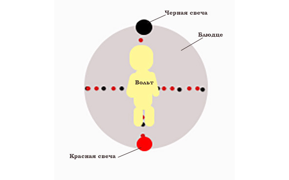 Закопать ямку. Сверху на нее поставить красную свечу и зажечь.