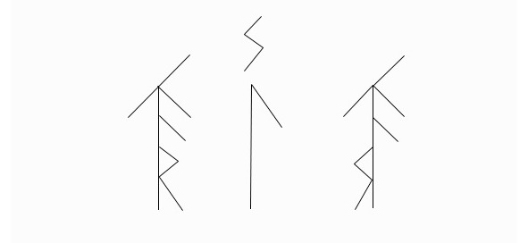 4. Ансуз (слева, имеет две общие линии с руной Тейваз) – мужчины обращают внимание на эту женщину.