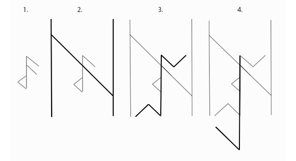 1. Иса (4 руны в виде квадрата, наносятся одна за другой в направлении по часовой стрелке, начиная сверху) – создаёт в сознании и подсознании объекта воздействия психологический блок на вредную привычку.