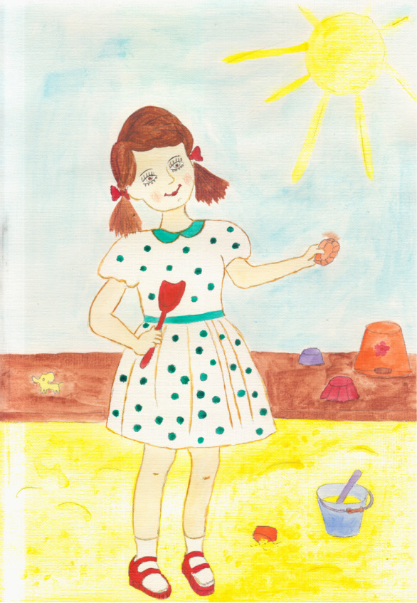 Куличики, куличики,Их любят все лепить,Моя сестрёнка старшаяНе может без них жить!Готовит из куличиковСалатик, суп, компот,Большая, но играетсяИ даже торт печёт!Научит старшая сестраПремудростям меня:Варить и жарить из песка…Ведь мы же с ней родня!Обед наш праздничный готов,Пожалуйте к столу,И угощенье из цветовЯ куклам подаю…Внутри песочное суфле,А сверху красота,Могу кусочек дать тебе,Попробуешь? Да?… Да!Любимая игрушка