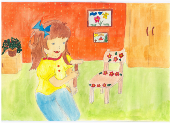 Приносите кресла, стулья,Всё починим, только дай!»«Нет, спасибо вам с енотом,Я пошла, а ты играй!»Увлеклась Кристина наша,Что её не оторвать,Вот уж вечер, а дочуркаМолотком стучит опять…Двери, стулья, стол, кровати,Всё «починено» кругом…«Молодцы же вы с енотом!Весь наш дом стоит «вверх дном»…Ну а дочка так довольна,Счастье светится в глазах:«Ладно, хватит на сегодня,Завтра будем чинить шкаф!»Ремонтируют, колотят,Слышно только: тук-тук-тук!Но не плачет, а хохочет!Это лучший в мире звук!