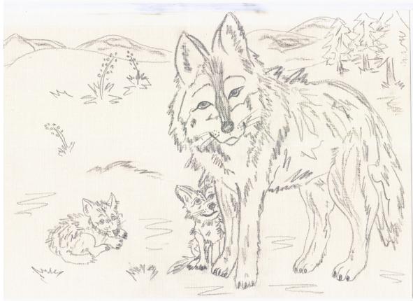 Волк волчат своих училИ по-волчьи громко выл:«У-у-у!», – пугал волчат, —«Ры-ры-ры!», – учил рычать.Смотрят волки – малыши,Узнают, кто их враги,Как охотиться в лесу,Обхитрить как им лису.