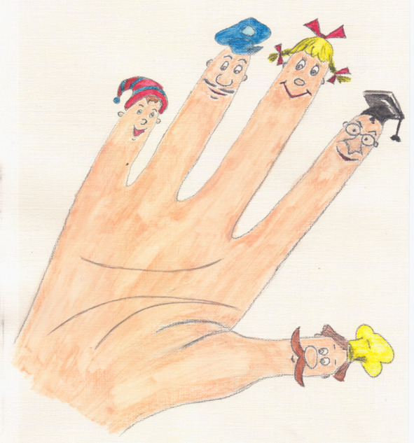 Дочка пальчики «кормила»,И при этом говорила:«Эту ложку – за тебя,Помогаешь мне всегда,Пальчик самый ты большой,Кашу мы съедим с тобой!Эту ложку – за тебя,Указательный, всегдаНам укажет верный путь,Важный самый, не забудь!Ну, а следующей ложкойНакормлю свой пальчик – крошку,Самый маленький ты мой,Накормлю тебя, родной!Всё, наелась, мама, яИ играть теперь пошла…»Мама спрашивает дочку:«Ты проверила? Всех-всех?Накормила ты?» И смех,Смех раздался… хохоча,Дочка ложку вновь взяла:«Да, забыла, как же так,Пропустила я вас, как?»Средний голоден всегда,Накормила… и едаИз тарелки убывала,Щёчки дочка набивала…Безымянный тоже «съел»Всё, что только захотел…Слышно вдруг из-за стола:«Всё, наелась, я пошла,Но играть я не могуИ немножко посижу,Так усердно я кормила,Что про меру позабыла,И теперь похожа яНа огромного слона!»
