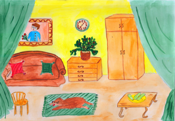 – А где у бабули щенок?– Вот!– А где у бабули цветок?– Вот!– А где у неё кабачки?– Вот!– Куда же девались очки?– Под…– Под стулом, комодом,Нигде очков нет,Под шкафом, диваном —Всё тот же ответ…Повсюду их ищем,Ты нам помогиИ их на картинкеСкорее найди!