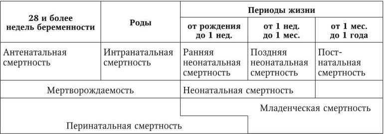Каждому периоду соответствует свой показатель смертности. Показатели перинатальной смертности рассчитываются на 1000 родившихся живыми или мертвыми.