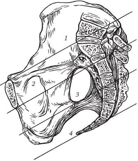 В малом тазе различают вход, полость и выход. В полости малого таза выделяют широкую и узкую части. В соответствии с этим в малом тазе различают четыре классические плоскости (рис. 1).