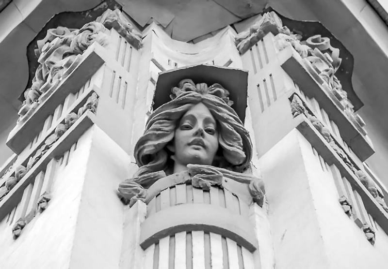 Прекрасная эпоха модерна принесла на фасады Москвы прекрасные лики (дох. дом 1904–1906, арх. Л. Кекушев). Пречистинка, 28
