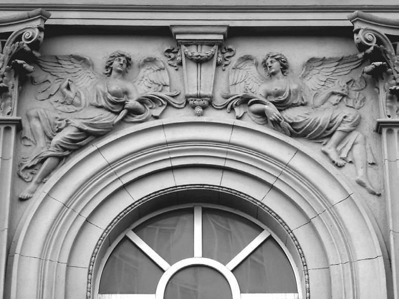 Доходный дом в Малом Кисловском переулке (дом № 9) украшают аллегорические барельефы – прекрасные фигуры слав