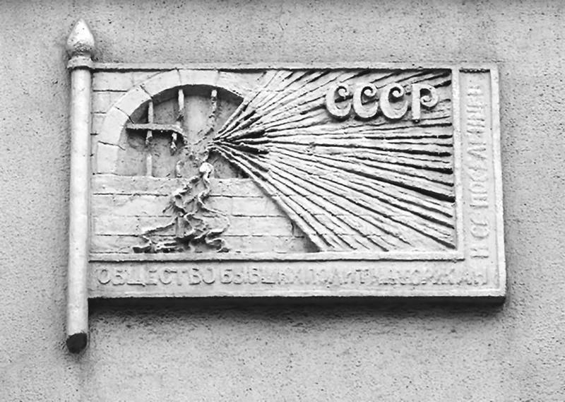 Барельеф в виде флага на фасаде «Дома политкаторжан». Чаплыгина, 15