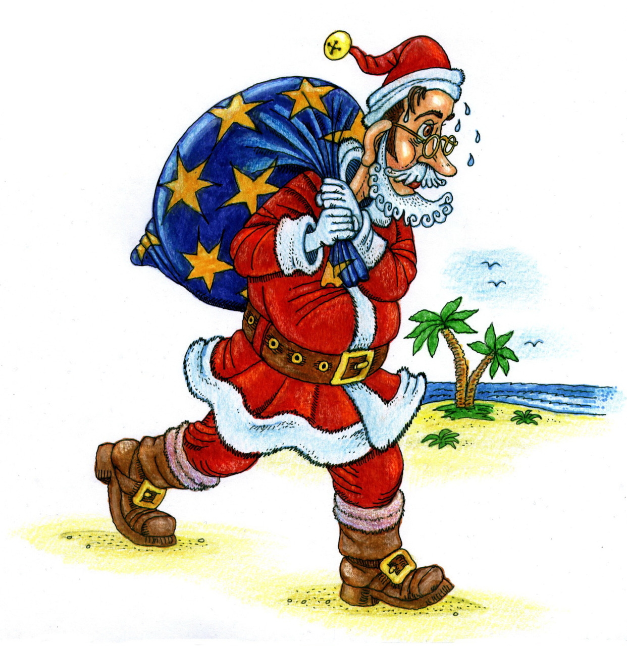Во-о-он, видите того Санта-Клауса, который, обливаясь потом, тащит мешок с подарками? А направляется он прямехонько к вилле дядюшки Сэма.