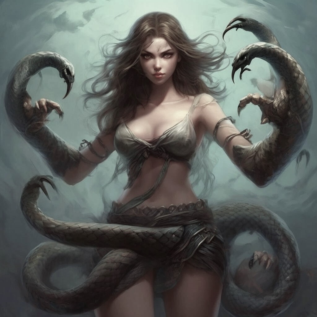 Перехватив его руки с силой, не свойственной людям, женщина начала трансформироваться. Кисти её превратились в когтистые лапы, а ноги в мощные змеиные хвосты, лицо обрело хищные черты, в глазах вспыхнула ярость.