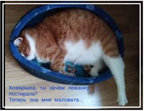 И ничего, что по размеру лежанка оказалась чуточку маловата… Главное – спор выиграл у Фили. Тот утверждал, что Барсик там не поместится. Правда, Барсик тоже сомневался, но всё же поспорил.
