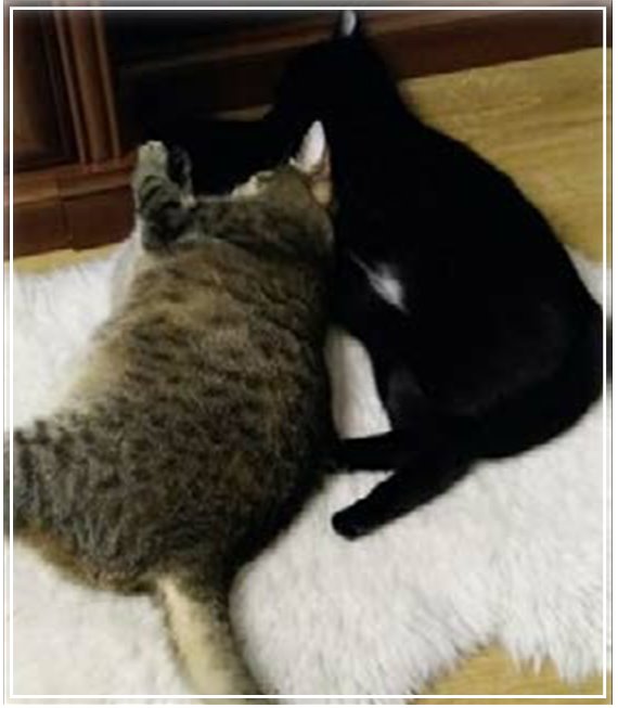 А когда гипс с лапки сняли, Филя уже тихонечко подкрадывался к отдыхающему Барсику и заваливался рядом. Всё же он не терял надежды, что тот признается в своём отцовстве. Но не на того напал…