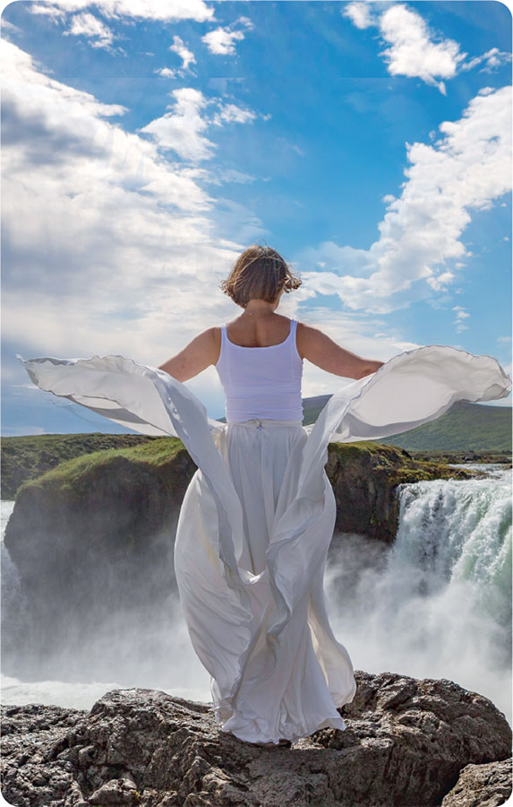 Эта фотография была сделана в Исландии. Солнце выглянуло из-за туч буквально на несколько минут, чтобы помочь сделать волшебный кадр – как подтверждение природой того, что каждая из нас может летать. Стоит только по-настоящему этого захотеть и вспомнить о сильных крыльях своей души.