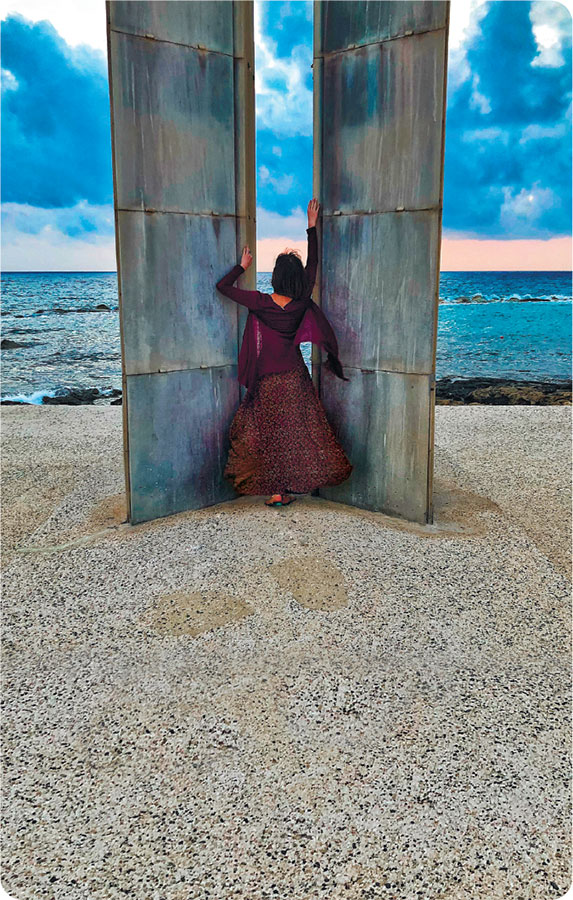 Эту инсталляцию мы нашли на берегу моря в Пафосе. В ней как будто отображена идея настоящего момента, который мы часто замыкаем между сожалениями о прошлом и тоской о будущем.
