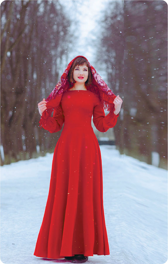 Эта фотография сделана в Подмосковье. Мне очень хотелось совместить красоту русской зимы с красотой русской женщины, показывая, что женственность – это удивительное состояние мягкости и силы одновременно.