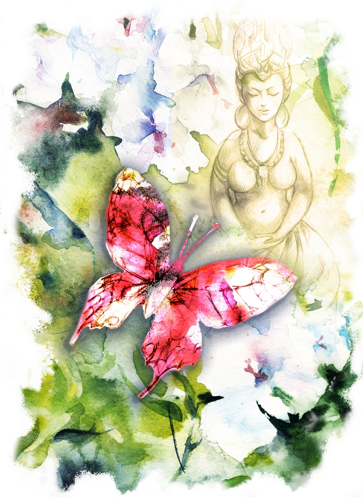 О! Случилось чудо! Прямо перед образом Божественной Матери, украшенным красным покрывалом и гирляндами цветов, затрепетала маленькая бабочка. Она сновала то вверх, то вниз, то подлетала чуть ближе ко мне, то удалялась, снова взмывала вверх и опускалась вниз. В это трудно было поверить, что вот так, по одной только просьбе, вдруг мне был послан знак. Что это? Простое совпадение или подтверждение чуда происходящего события?
