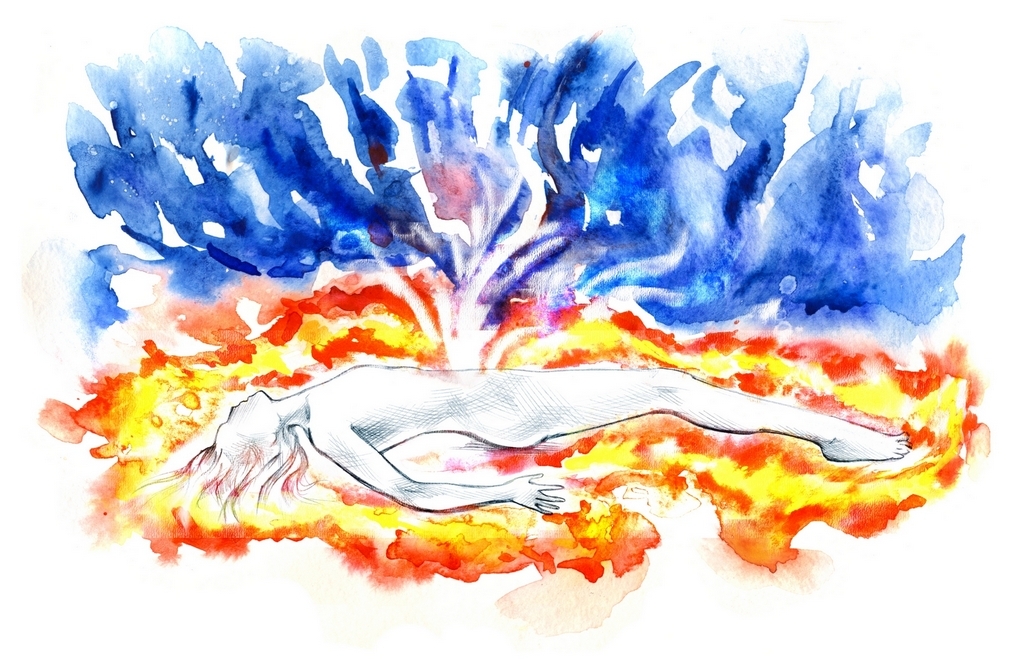 Позже я получила другой опыт в практике, когда энергия пробивалась в позвоночнике снизу вверх, и мне казалось, что основание тела погружено в огонь. После её окончания я лежала на полу в Шавасане4, энергия всё ещё вскипала в позвоночнике и, как электрический разряд, пронзала тело так, что оно выгибалось в дугу. Потом я чувствовала, как она растворялась в области таза и затем приходило умиротворяющее расслабление. Я думаю, тогда происходила работа на уровне нижних энергетических центров.