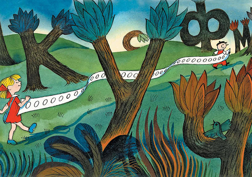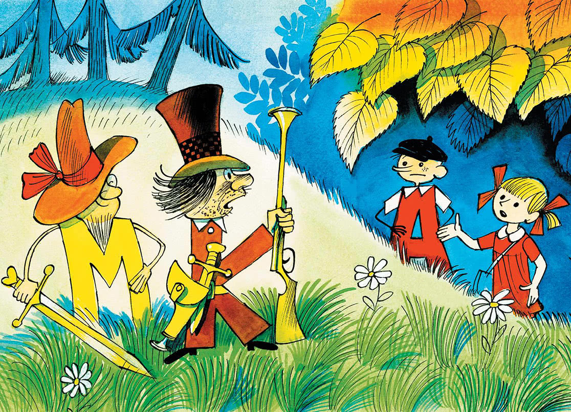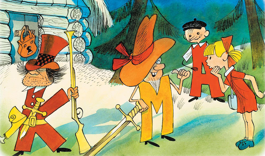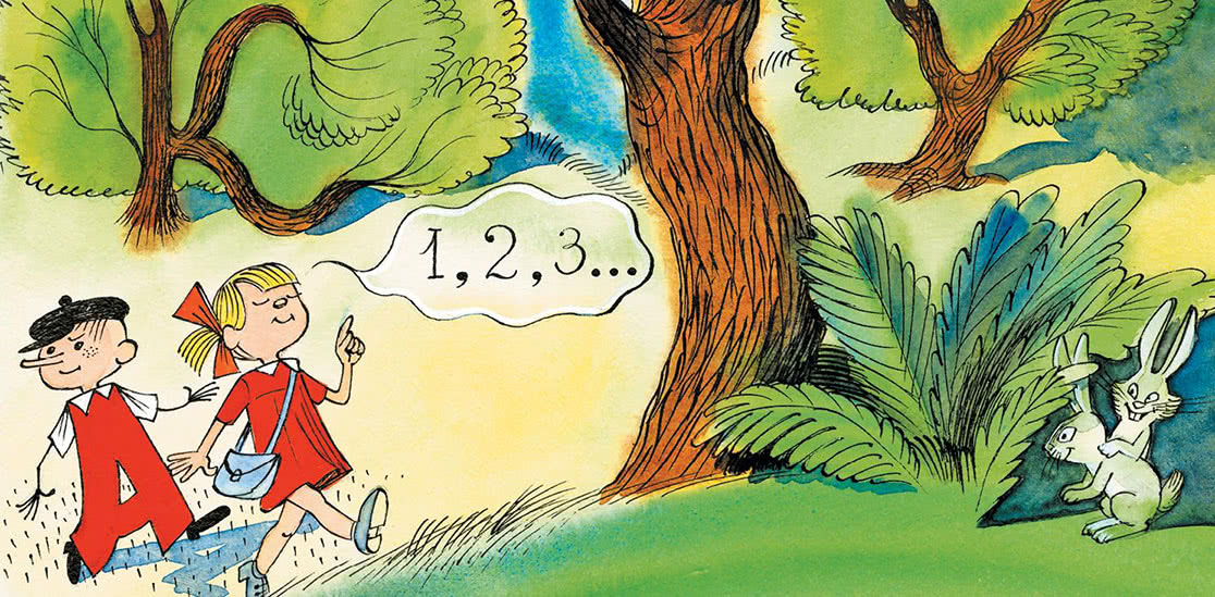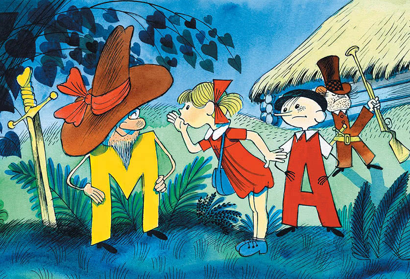 – Спасибо, – сказала Аля этим странным буквам и, повернувшись направо, она вместе с буквой А принялась считать: 1, 2, 3, 4, 5, потом они повернули налево и опять начали считать: 5, 4, 3, 2, 1.