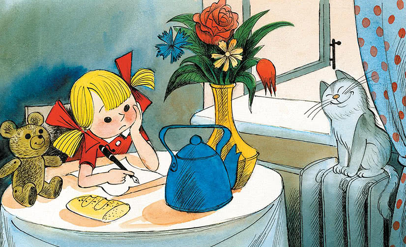 Аля писала письмо маме. Она очень старалась написать хорошо, но всё шло шиворот-навыворот: буквы не слушались, падали, менялись местами и ни за что не хотели браться за руки, точно они все друг с другом перессорились. Ну, просто наказание!