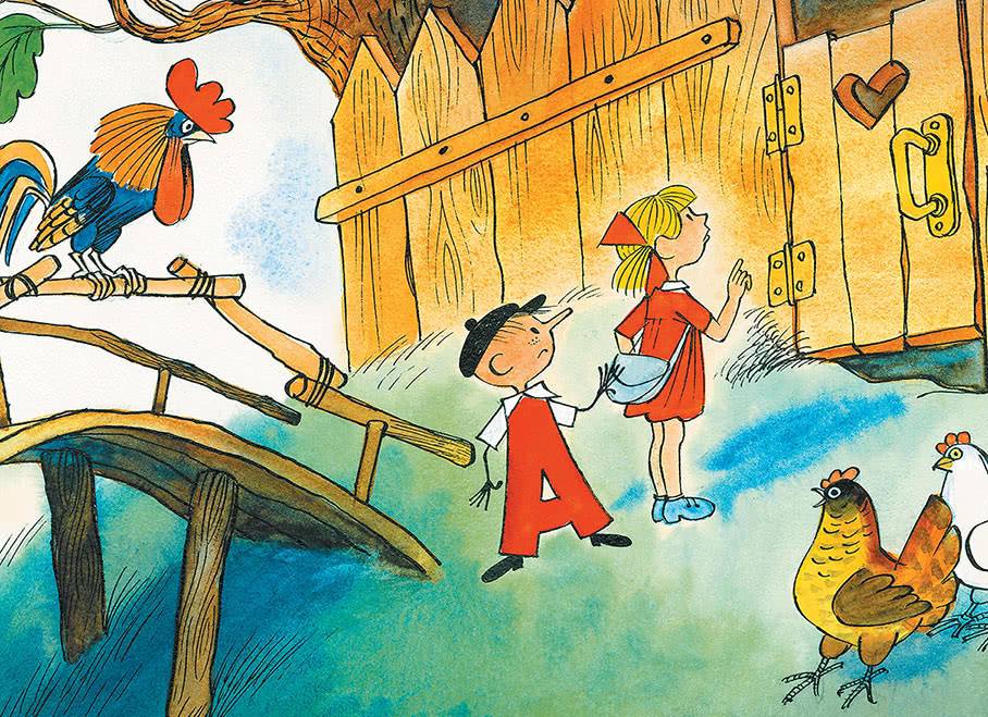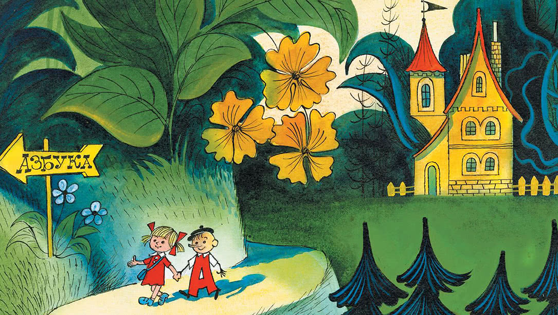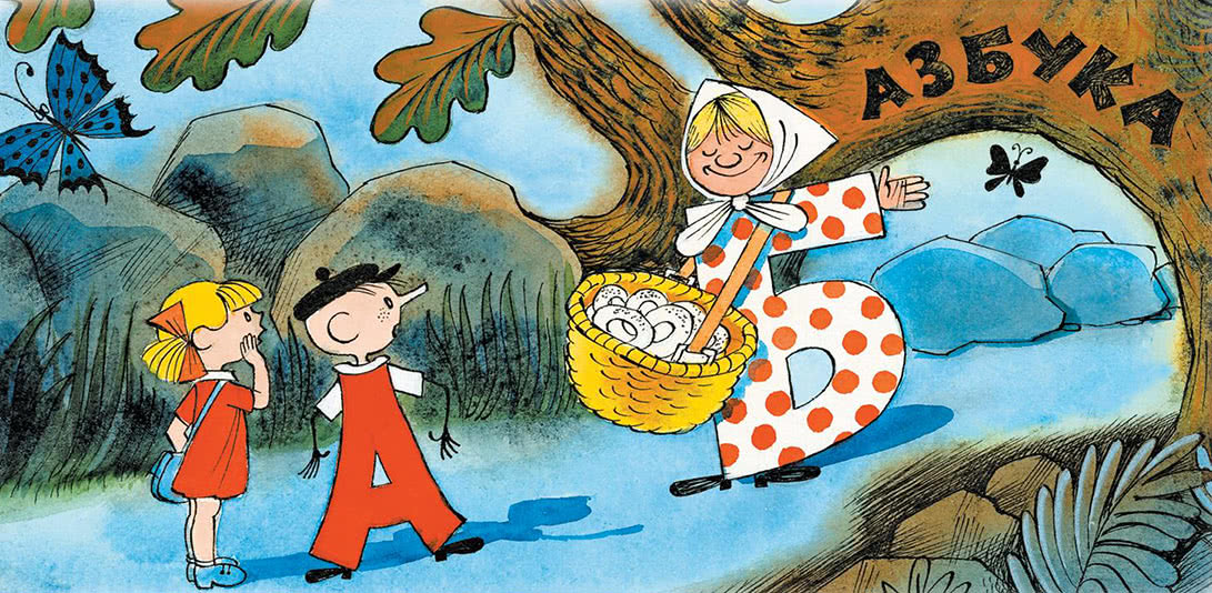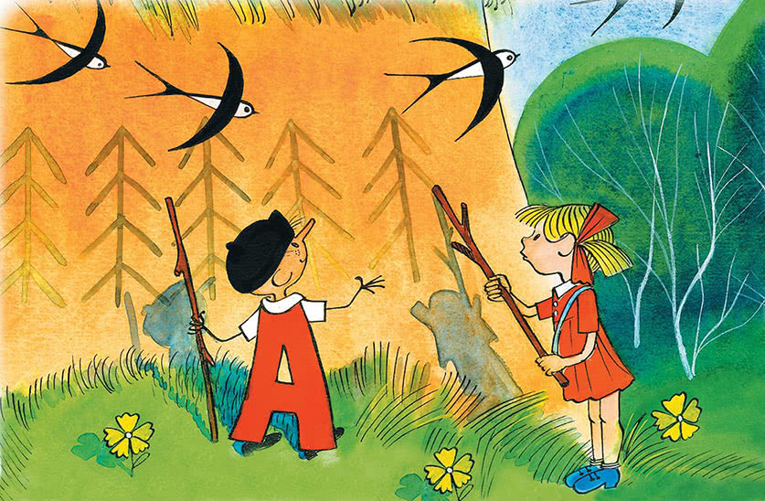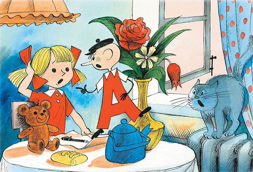 Взявшись за руки, Аля и буква А направились прямо в Азбуку.