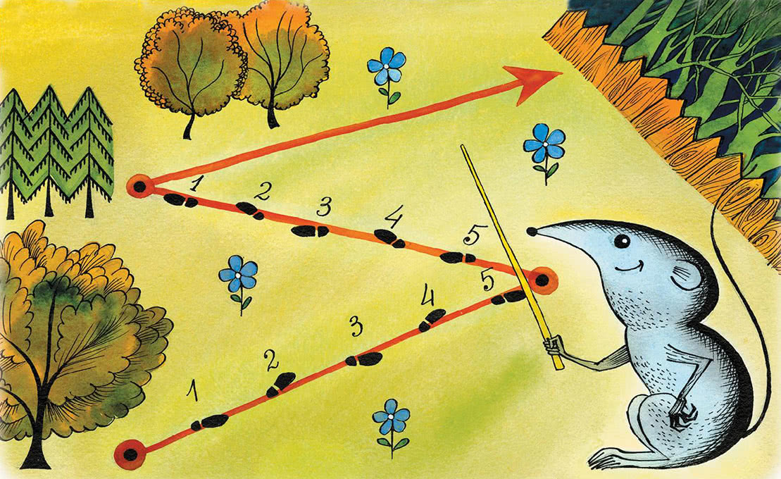 – Идите направо. Отсчитайте пять шагов. Потом идите налево, считайте в обратном порядке. Потом от пяти ёлочек – опять направо. Ёлочки вам придётся нарисовать, потому что наш лес – лиственный. Сделайте десять шагов. Отыщите в заборе калитку. Они скажут.