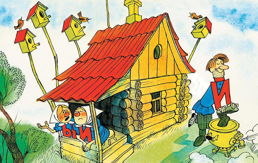 За забором стоял просторный бревенчатый дом. Там жили буква И, буква Ы и буква Й. Букву Й звали Тимофей. И с Ы целыми днями сидели на террасе и спорили, кто из них главнее.