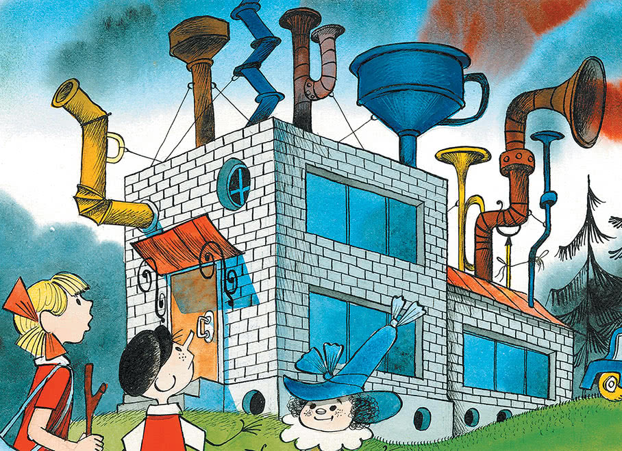 Но вдруг поезд со скрежетом затормозил и остановился. Пассажиры высыпали из вагонов. Подумать только! Дальше пути не было! Это Кляксич (кто же ещё?) унёс рельсы, разобрал шпалы и даже спилил все деревья!