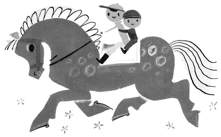 Едем, едем на лошадкеПо дорожке гладкой:В гости нас звала принцессаКушать пудинг сладкий.Мы приехали к обеду,А принцессы дома нету.Две собачки у порогаНам сказали очень строго:«Ав-ав-ав!Гав-гав-гав!»
