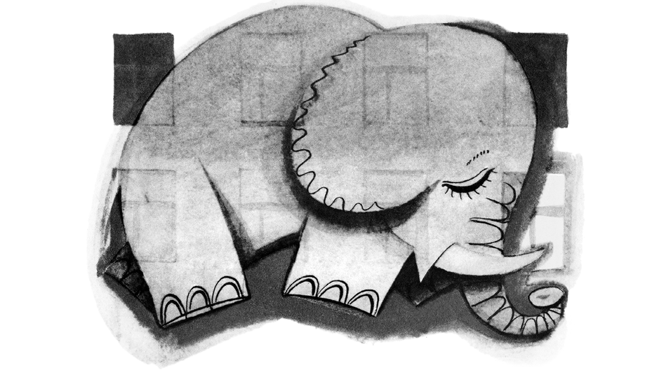 Динь-дон. Динь-дон.В переулке ходит слон.Старый, серый, сонный слон.Динь-дон. Динь-дон.Стало в комнате темно:Заслоняет слон окно.Или это снится сон?Динь-дон. Динь-дон.