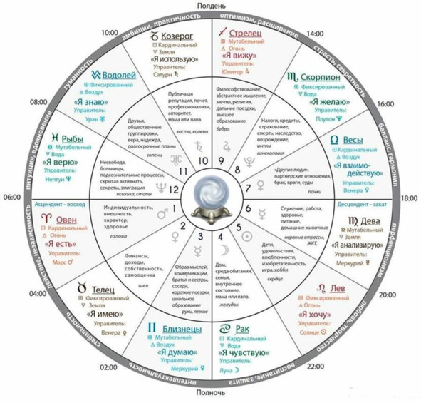 Все эти составляющие есть в любой натальной карте, но их положение и взаимодействие между собой у каждого индивидуальны.