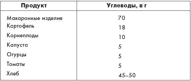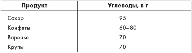 Таблица 1Содержание углеводов в готовых продуктах (в 100 г)