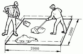 Рис. 15. Площадка для замеса растворов (размеры даны в мм).