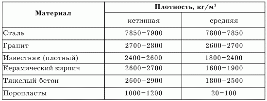 У плотных материалов – таких, как сталь и гранит, – средняя плотность практически равна истинной, у пористых – меньше истинной.