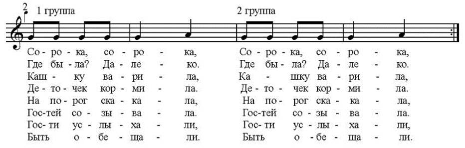 Дети постарше после знакомства с песней по содержанию определяют, сколько групп исполнителей.