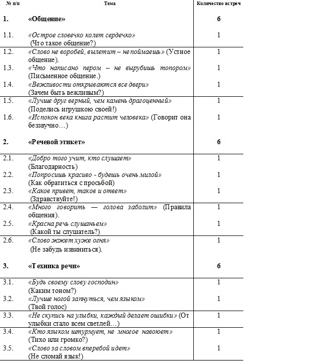 в течение одного года (предшкольная подготовка), что составляет 36 недель, то есть одна тематическая встреча в неделю;