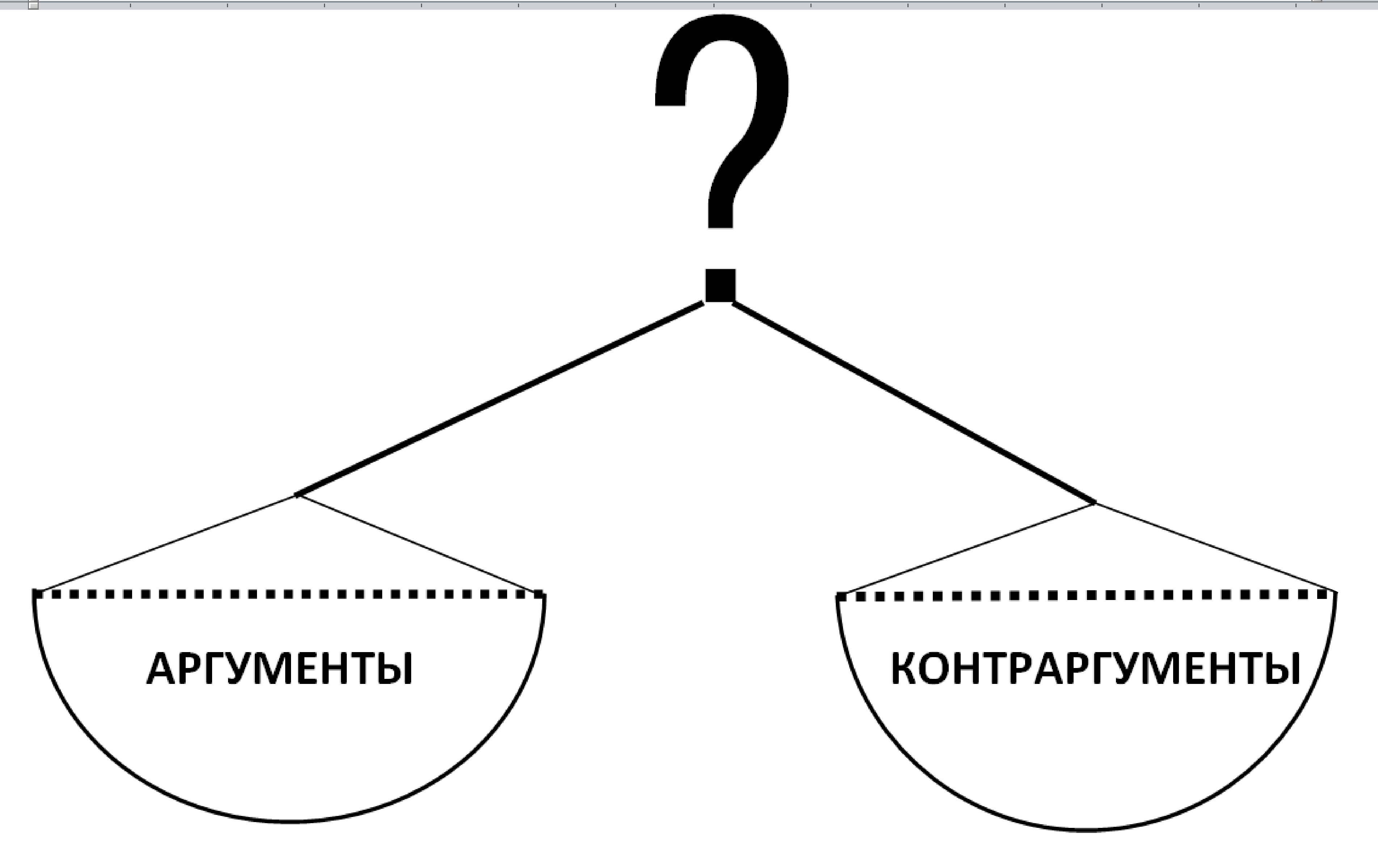 Аргумент в логике – утверждение, приводимое в подтверждение или доказательство другого утверждения (заключения). Контраргумент – утверждение, приводимое в опровержение оппонирующего утверждения. Даже из этих определений видно, что деление весьма условно. Доводы «Нашей» стороны – аргументы, «Их» – контраргументы. Но если дело происходит в одной голове, то там нет «Нас» и «Их». Есть доводы в пользу одного решения и доводы в пользу другого. Поэтому договоримся, исключительно для удобства, что: