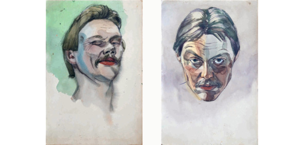 В подобном стиле, как иллюстрации к роману «Мастер и Маргарита», были сделаны и ранние автопортреты 1993 года.