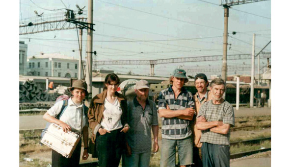 На перроне. Начало пленэра «Тобольск-2001». Слева направо: