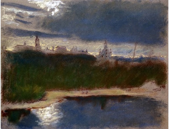 Этюд к картине «Розовый закат над Турой. Верхотурье». 2000.