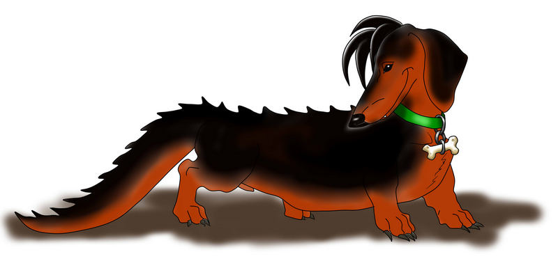 В просторной загородке на подстилке из синтетической соломки сидела собака. На первый взгляд женщине показалось, что это просто такса. Обычная гладкошерстная такса, черная с рыжими подпалинами. Необычным были длинная жесткая черная челка, острые костяные выросты, гребнем торчащие вдоль позвоночника и толстый длинный, прямо-таки крокодилий хвост. Из пасти кокетливо выглядывали кончики остреньких клычков.