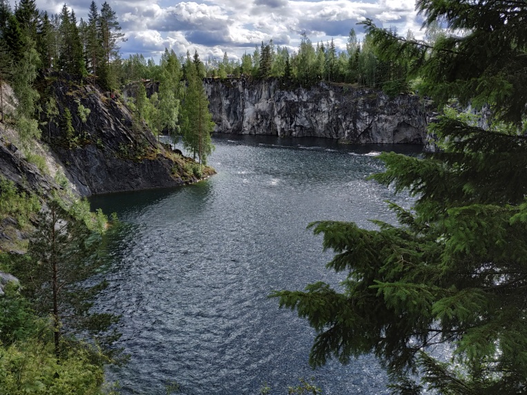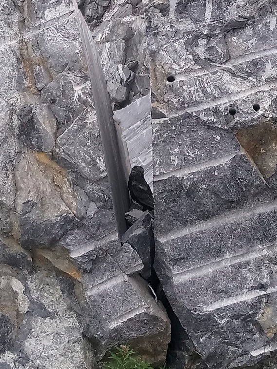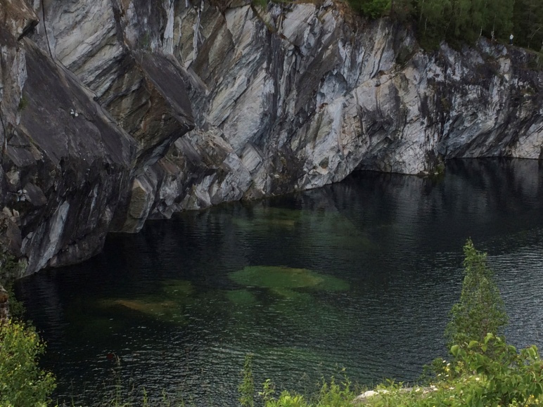 Нежно-палевая стена с разнообразными неповторяющимися узорами мраморного карьера ещё хранила следы работы человека – где-то была идеально ровной, гладкой, где-то виднелись наклонные полосы, оставленные острыми зубьями экскаватора, где-то чернели аккуратные отверстия горизонтальных шурфов.