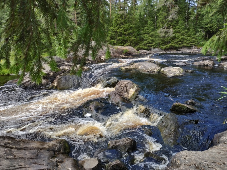 Проскочить мимо Водяных перекатов было не возможно – ручьи стекались в речку, образуя небольшое озеро, прямо у дороги. Так что уже через час путешественники были на месте. Они оставили машину на обочине и углубились в лесок. Тропинки не было, приходилось идти то у самой кромки воды, то углубляться в лес, то перескакивать с камня на камень. Красиво было – не описать словами! Только они решали, что всё уже увидели, и можно возвращаться назад, как совсем рядом мелькал или шумел следующий перекат, и невозможно было устоять от искушения посмотреть «последний».