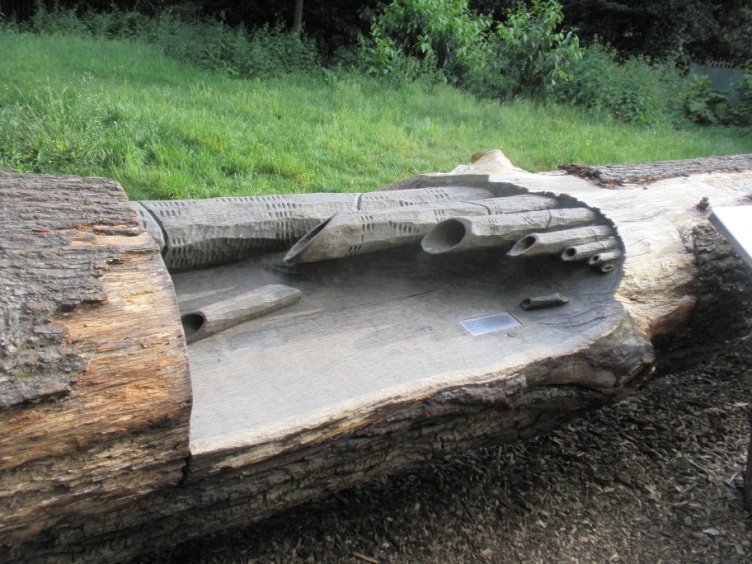 Это такой остеклённый со всех сторон пешеходный мост длиной 200 метров, вознесённый над землёй метров на 15. Идея была в том, чтобы с его высоты сориентироваться в бескрайних просторах сада, выделить для себя самое интересное и направить туда свои стопы в первую очередь. Ага! Сориентировалась! Просторы, действительно, были бескрайние. Куда только хватало взгляд, везде простиралось зелёное море – плыви в любую сторону. Сориентироваться не получилось, но зато Мила ощутила себя великаном, легко скользящим по верхушкам деревьев. А ещё, рядом с винтовой лестницей на «Аллею» обнаружилось дерево-орган – искусно выпиленные трубы органа в лежащем на земле стволе старого дерева. Пройти мимо, не сфотографировать такое забавное чудо, Мила, конечно, не могла.